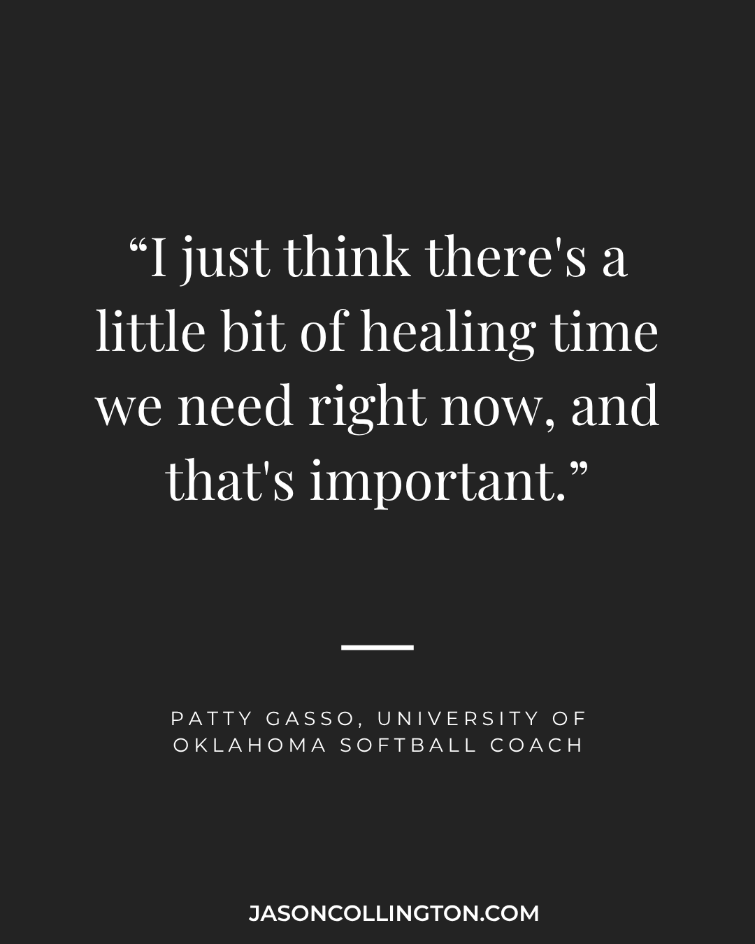 Too many times, the elite players don’t take a rest during the season. A star player didn’t appear in two games recently and when the legendary coach Patty Gasso at the University of Oklahoma was asked about it, she gave this answer.